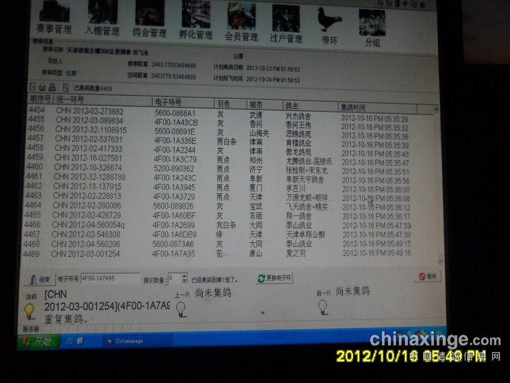 7 北京胜奥鸽具 北京 CHN 2012-01-649929 1012.604187 2012-10-17 11:21:22:730 雨白条
