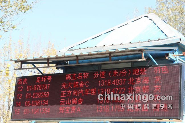 上午11点多,一群赛鸽,估计有二十多羽飞归,一圈二圈在棚上空盘旋之后落棚,现场沸腾着。任何观摩者都企盼着有无自己的赛鸽入围,心情激动着,观看着大屏幕。