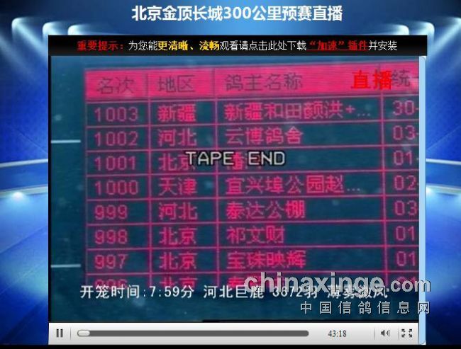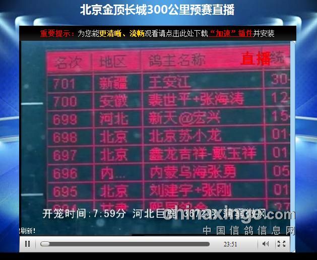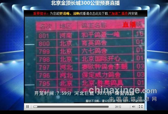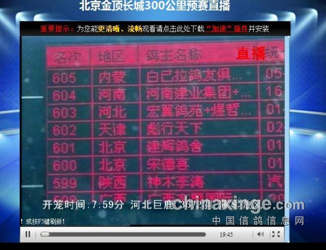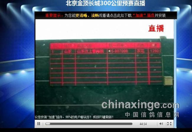 笔者坐在电脑前观摩由《赛鸽天地》直播比赛实况。