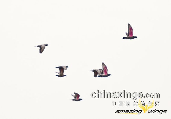 为防止猛禽攻击,赛鸽翅膀内侧喷上红色染料