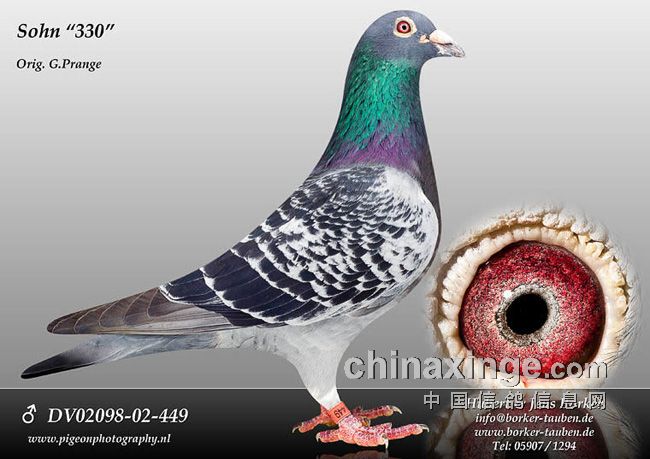 父:02098-98-330 “330号”-神奇种雄,普朗格招牌鸽。“330号”传奇赛绩。2001年1位鸽会6月鸽王,积分满分300点!赛绩: