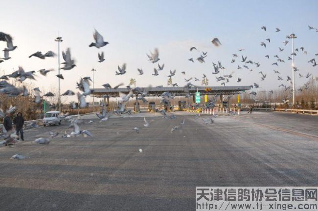 第二日凌晨2点30分,放飞车抵达距离新民10公里的柳河服务区。短暂休息,6点30分启程,7点钟抵达新民高速口,负责监放的新民信鸽协会三位裁判员已经到达,测量经纬度、联系天津公棚天气情况后,赛鸽于7点40分开笼放飞,赛鸽出笼后,走势不是很好,在空中盘旋了起来,几分钟后,才陆续向南飞去。