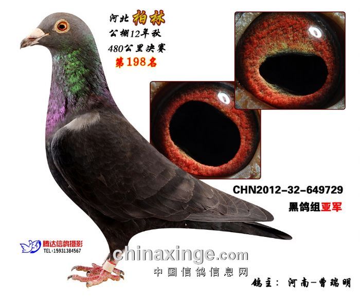 河北柏林公棚12年秋决赛黑鸽组前三位获奖鸽欣赏
