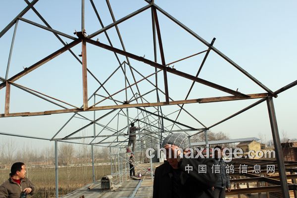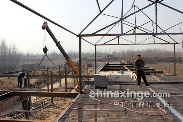 俗话说:“内行看门道,外行看热闹”,内行们通过看鸽棚的总体框架和使用的建筑材料就可以推测出老板的用心,外行只能看工地场面了。据现场的施工员介绍,这个月底将完成23间鸽棚的全部建设工程,目的是确保春节后参赛鸽子的入棚,不影响春季收鸽工作。