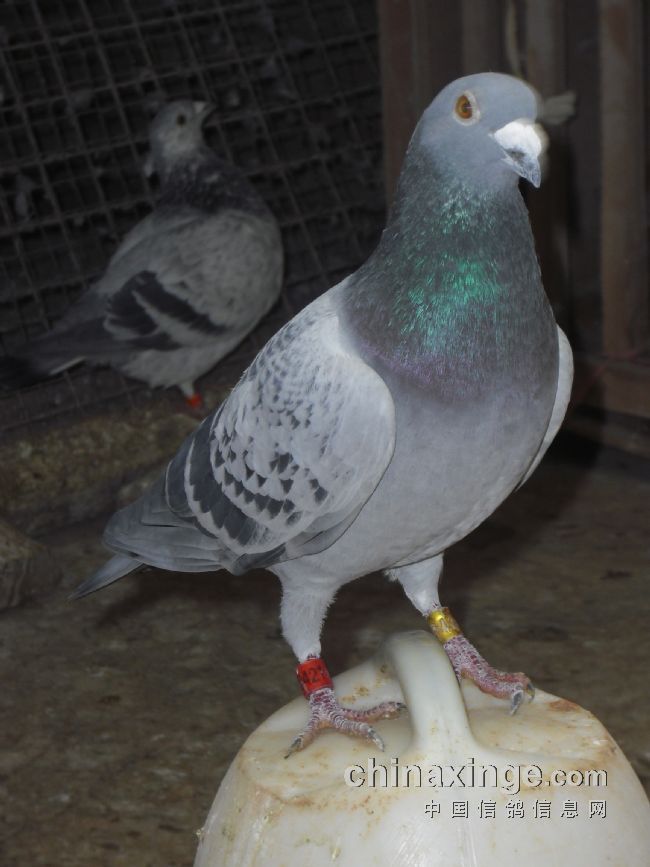 下面一羽是和上面同窝兄弟,区别是黄眼,在2012年赛区幼鸽3000个足环两关比赛中,取得26名 ,33名。