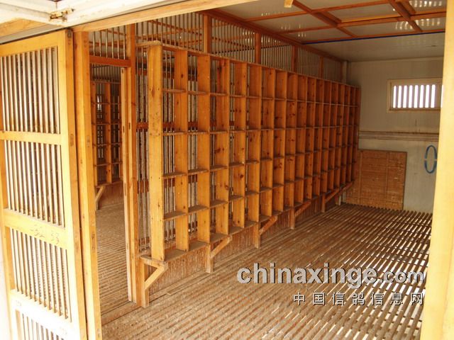 与种鸽棚相连的赛鸽棚分鸽舍与运动场两个部分。其中有可供赛鸽飞行的运动场长四十米,宽六米,与种鸽棚同高,赛鸽可以在里面自由飞行。
