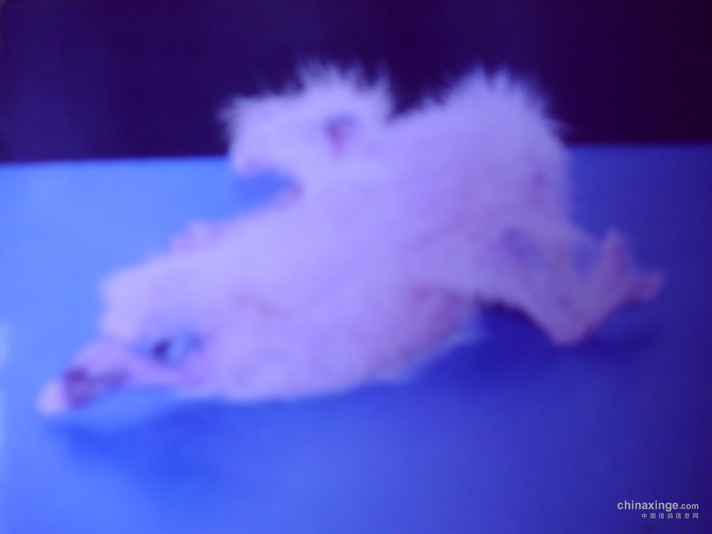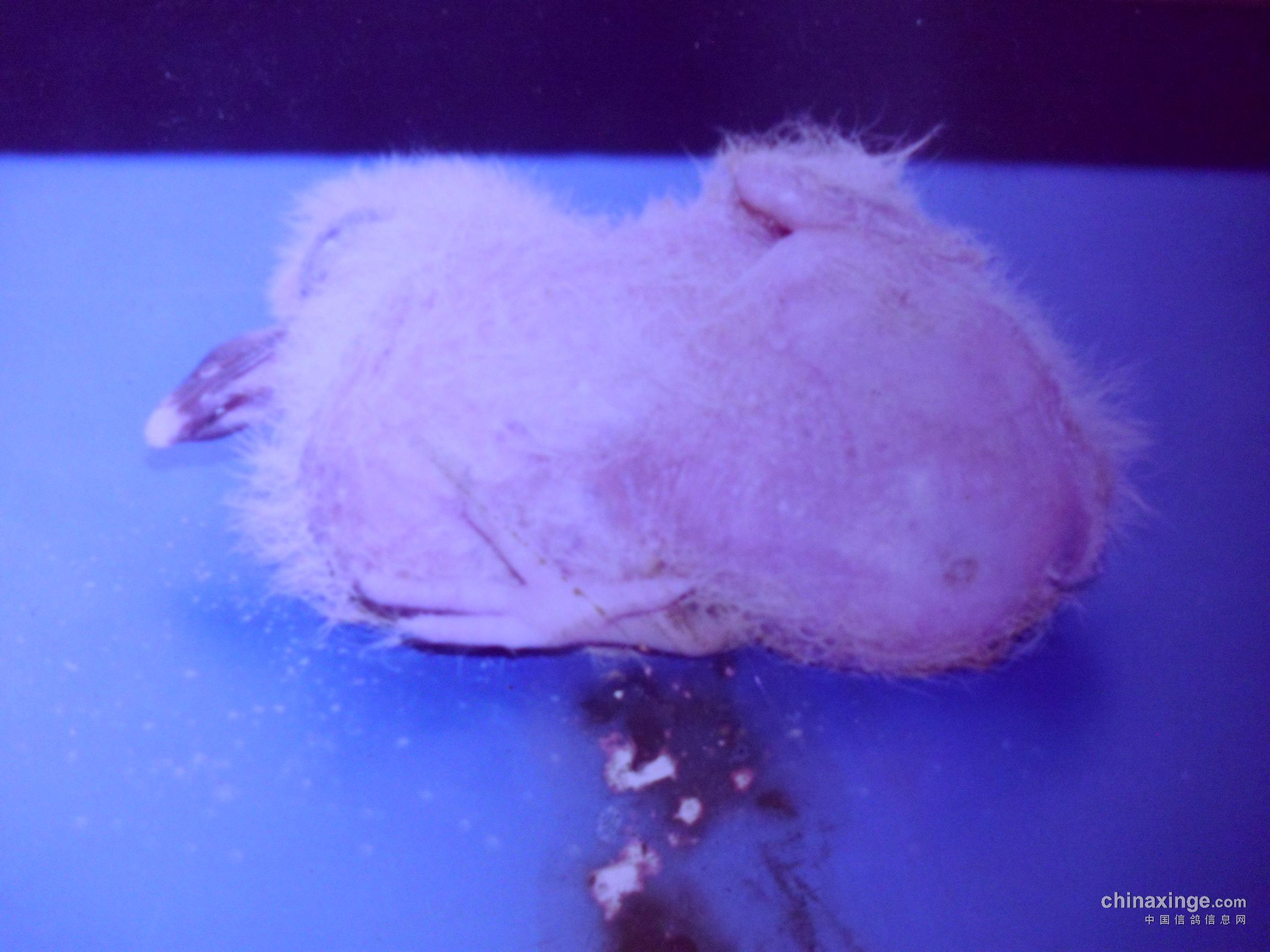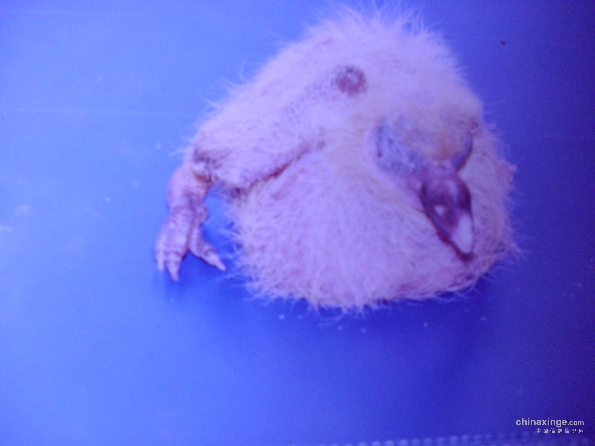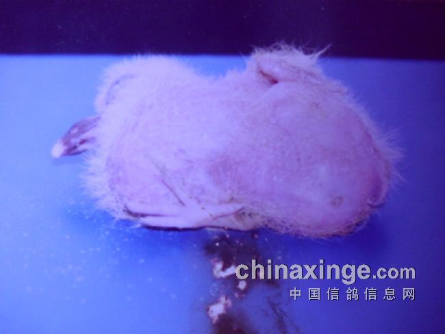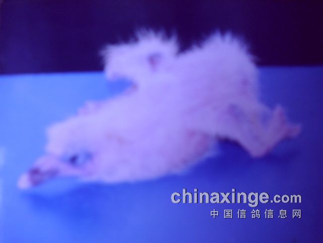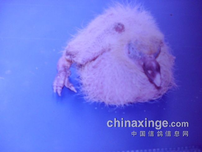 下面这三张图片,是上世纪八十年代末笔者鸽舍出现的现象,当时发现小鸽在4-5天时,身体老是歪在一边,笔者拿起一看,才发觉小鸽只有一条腿,是一个残疾儿。笔者马上用胶片相机把他拍了下来,今天又用小孩子玩的数码相机把它翻拍下来,由于这个数码相机功能太差太低档,拍不清楚原来的照片,还请朋友们理解。