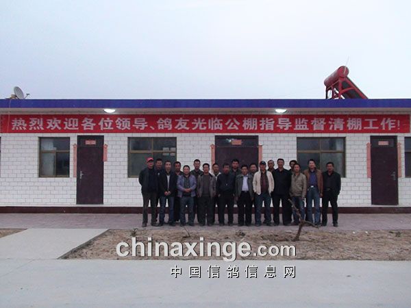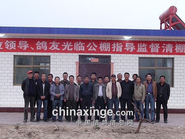 白银赛鸽公棚清棚前裁判员及鸽友代表合影