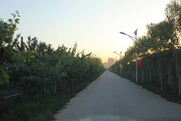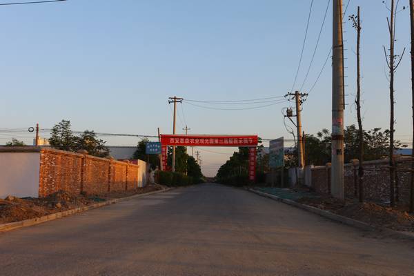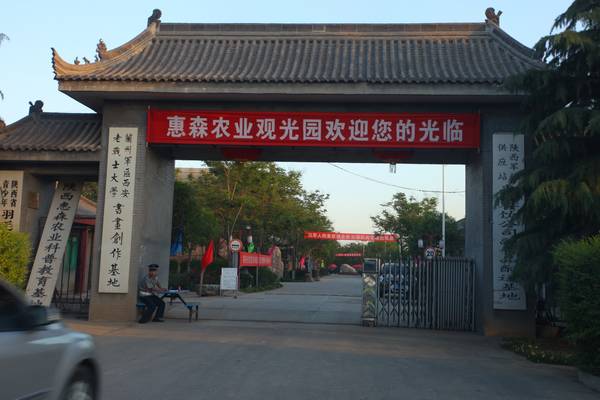 左拐弯后看到惠森农业生态园的大横幅,左面是天平公棚的指示牌