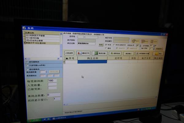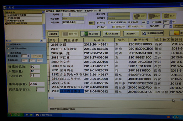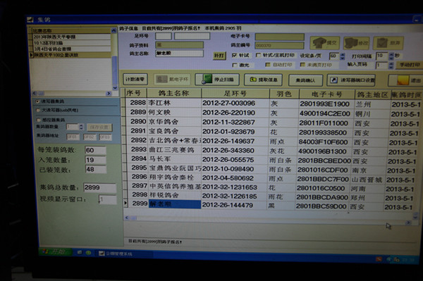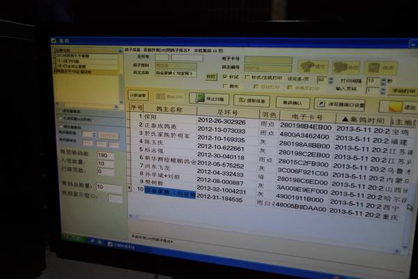 电脑实时显示集鸽信息,集鸽工作进行中