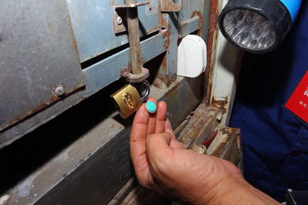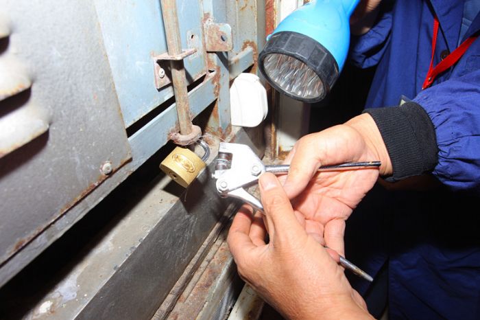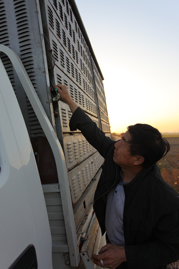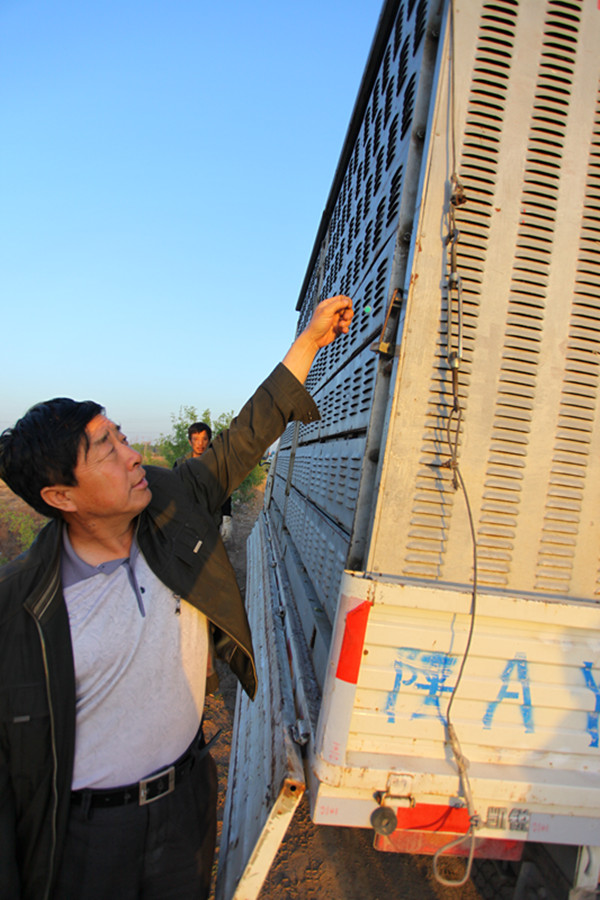 裁判员正在对集鸽车进行铅封