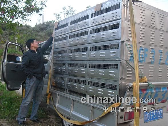 赛鸽车在2013年5月11日14时10分从重庆市垫江县徐徐出发,于12日晚上5时平安到达陕西省凤县。司放员11日下午在留坝县耐心地喂食、喂水,参赛鸽得到了足够的休息。