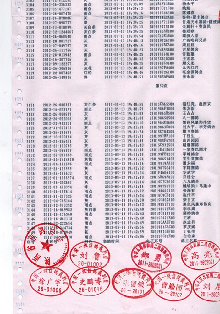 陕西飞虹赛鸽公棚第二关集鸽上笼扫描清单