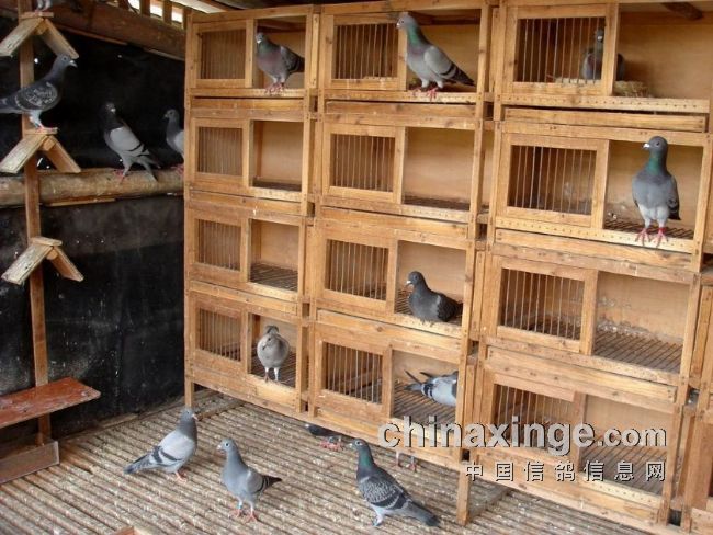 鸽舍一角:巢箱都是鸽友自做的