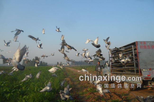 2、司放人员寻找开阔地,以便于赛鸽更好地出笼起飞