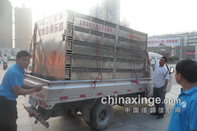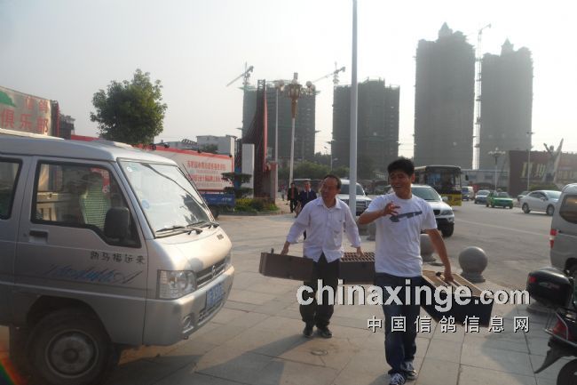 8、集鸽完毕,淮北市信鸽协会工作人员正在封笼、检查车辆,准备出发