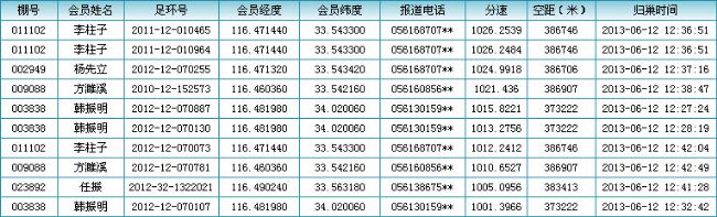 淮北市信鸽协会2013年春季“金地御景”杯前名次验鸽图片