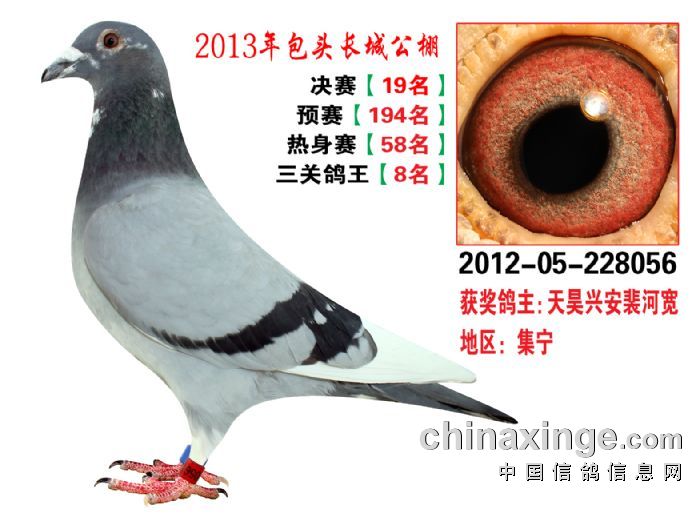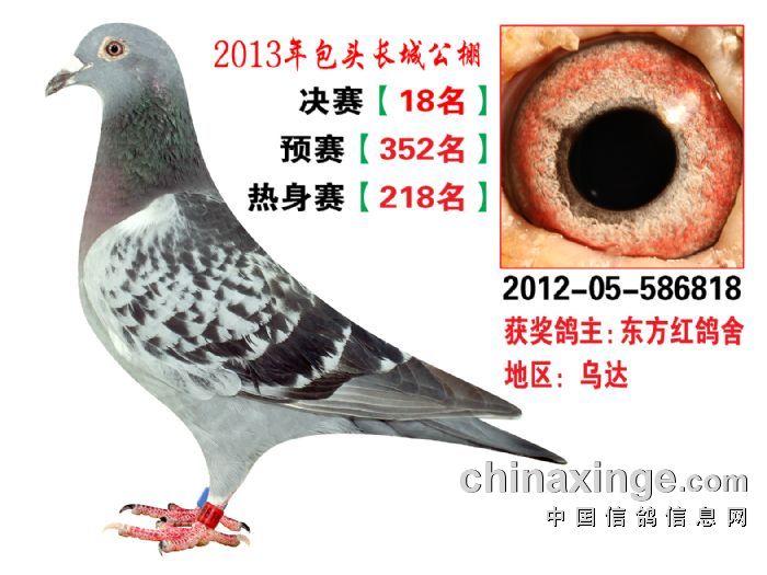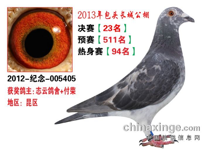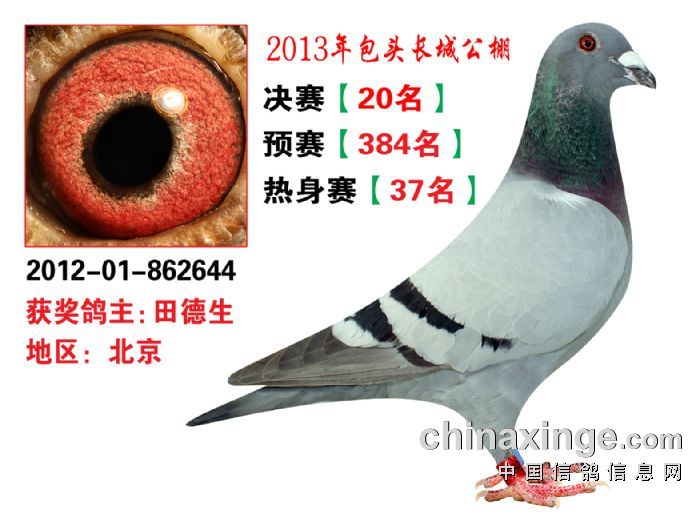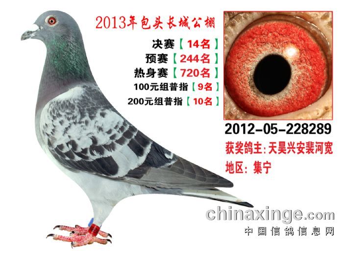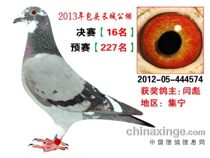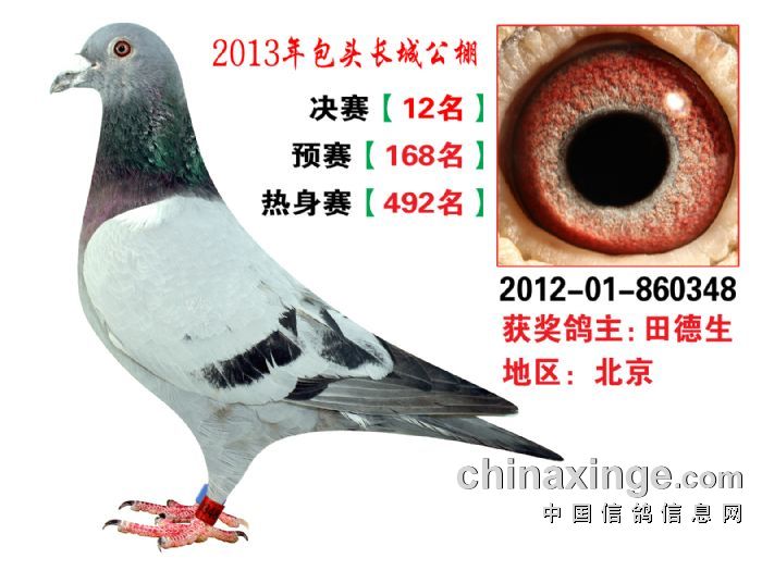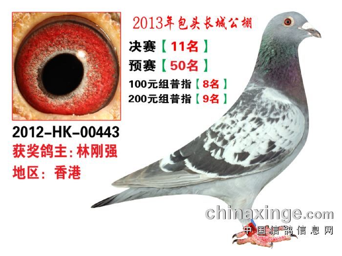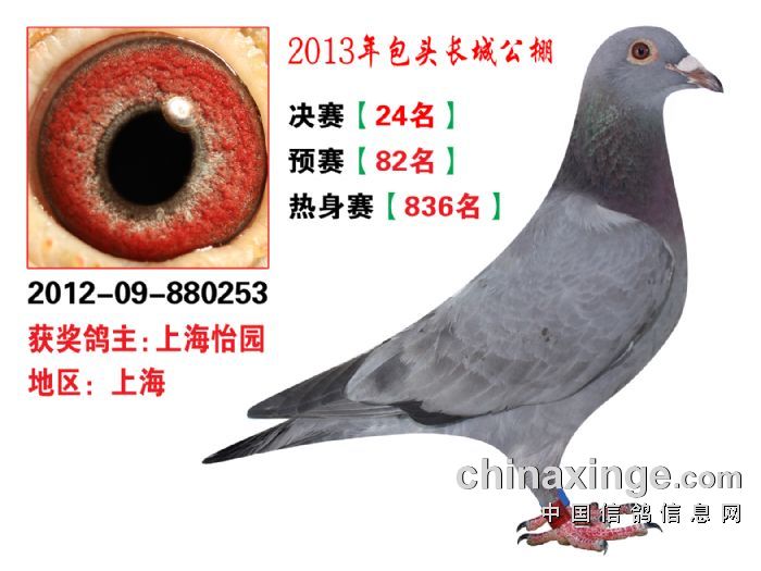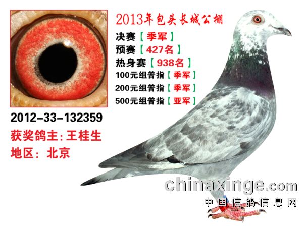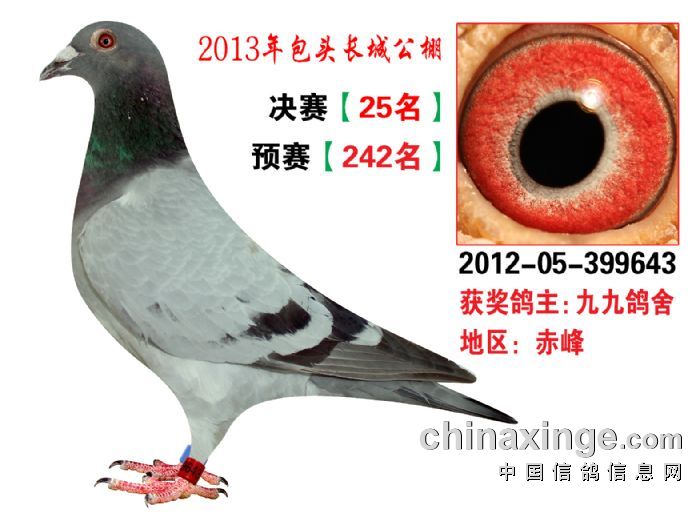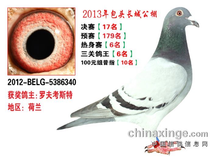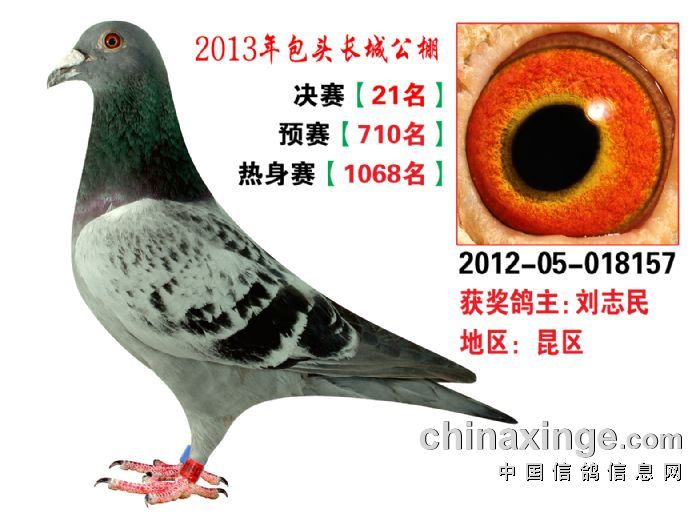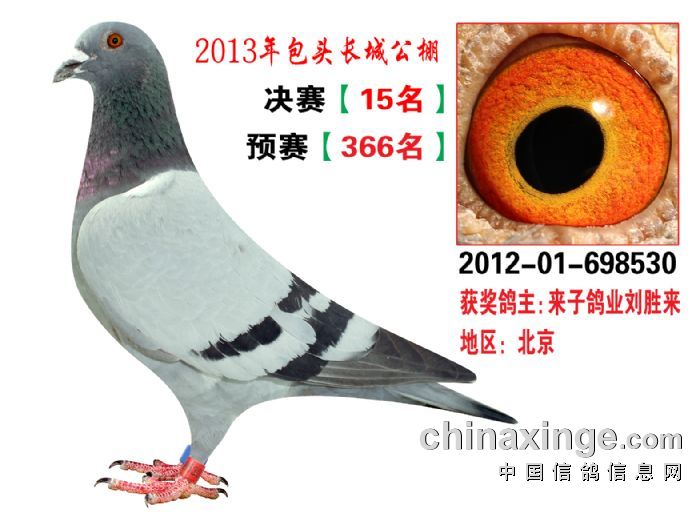 包头市长城公棚于2013年6月23日上午9点30分,在包头市阿健肥牛楼外楼海鲜店(青山区建设路包头市供电局东侧)举行颁奖及拍卖大会。长城公棚春季决赛于6月15日早上五点在宝公社开笼,比赛前十名成绩如下: