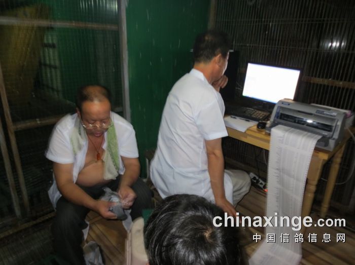 裁判长查看清棚后空笼,看有无遗漏鸽。