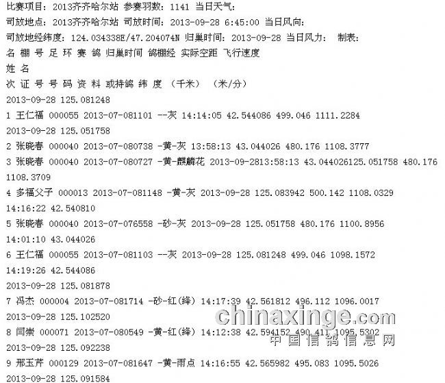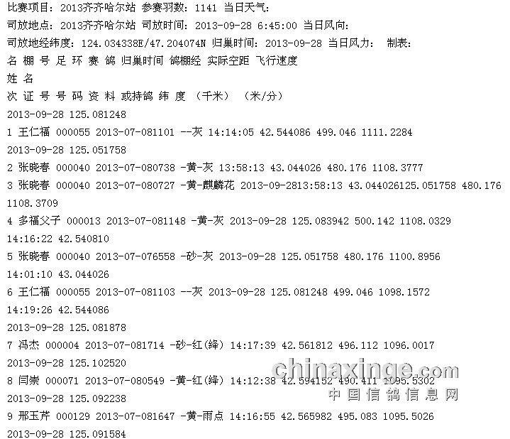 北京鸽友恭喜王仁福老弟取得千羽大赛冠军。