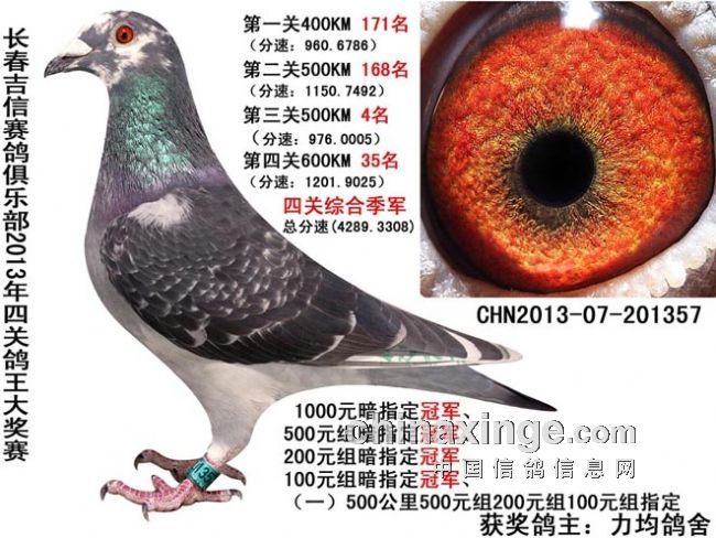 3 000025 力均鸽舍 13-07-201357 雄 雨白条 黄 4 4289.3308