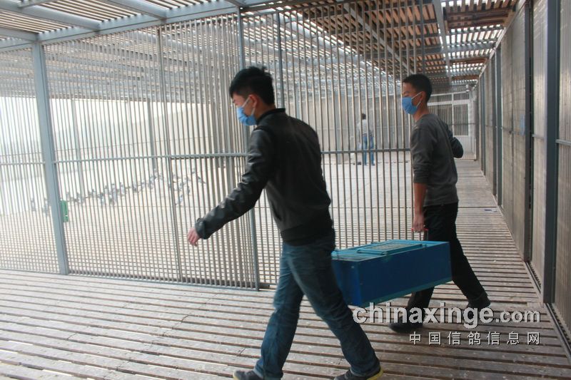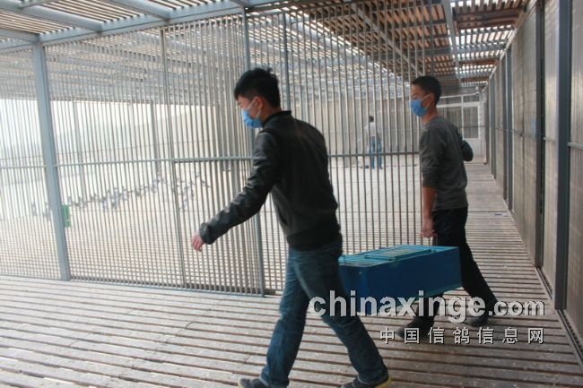 工作人员把赛鸽放在裁判要求的地方