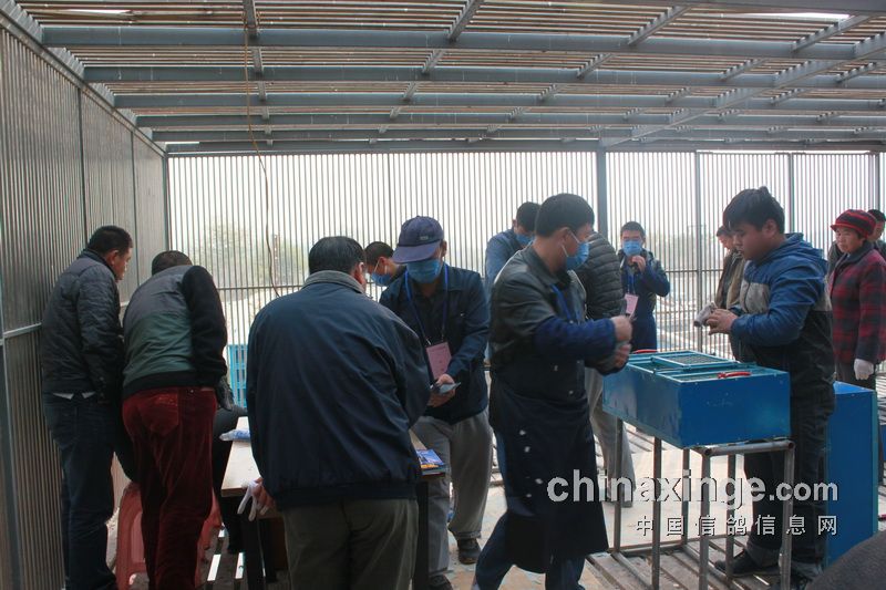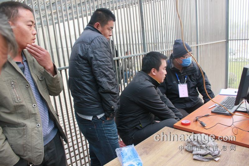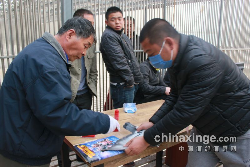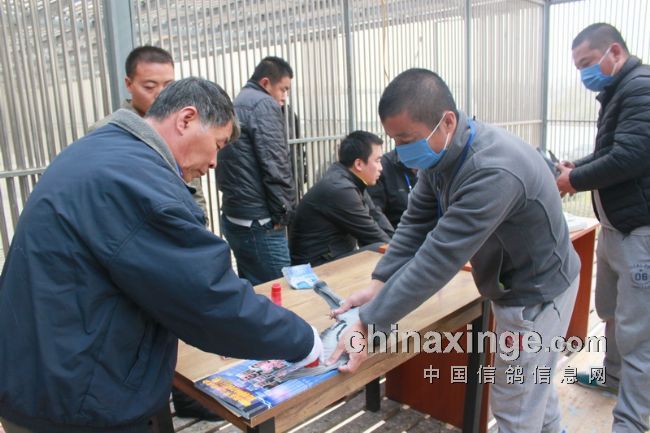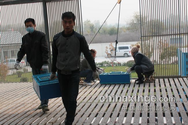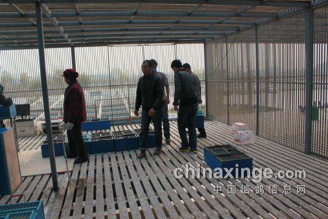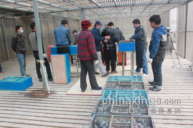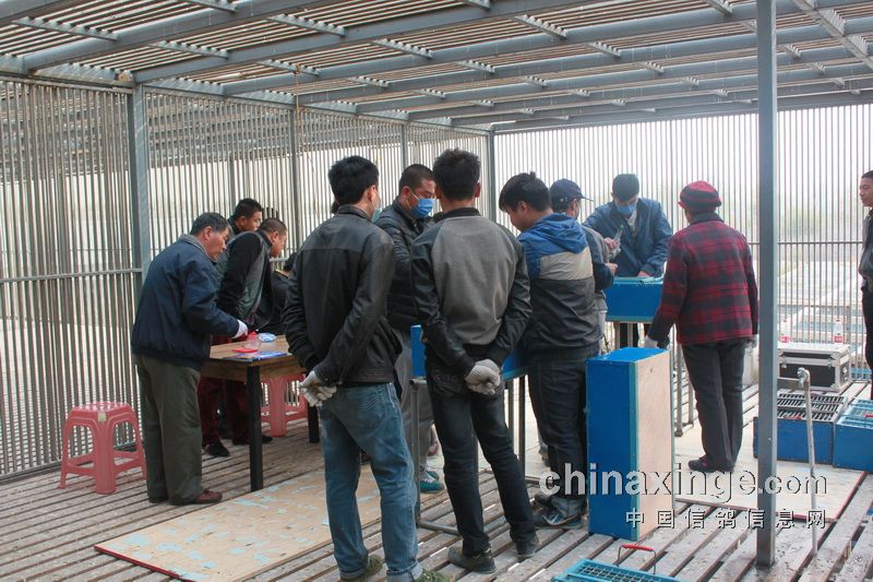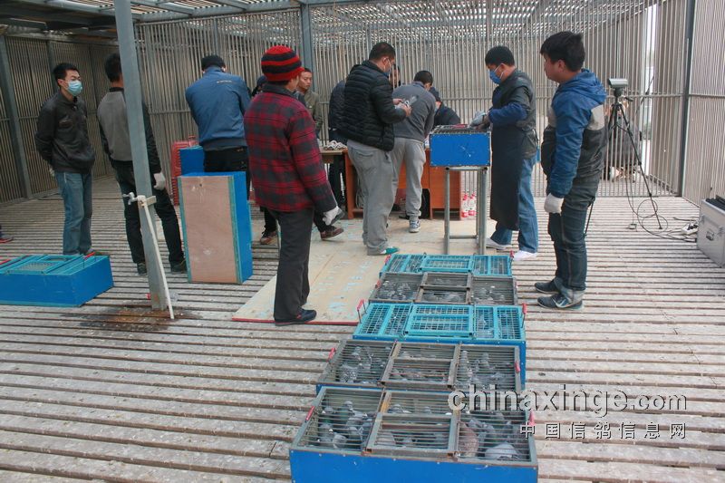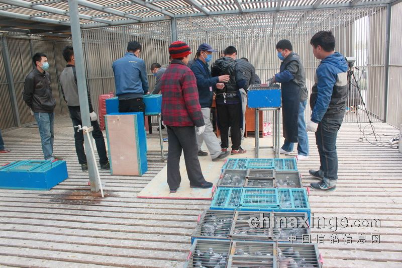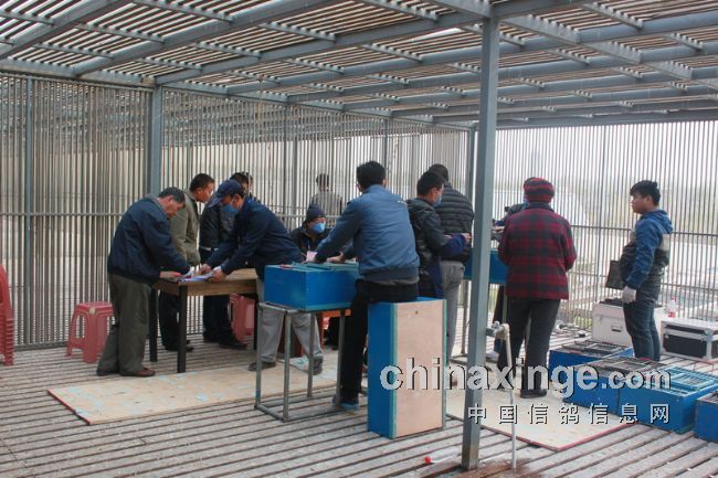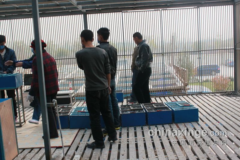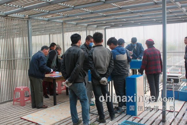 据作者的观察,今日的集鸽,市裁判由任广智带队,来了十位左右。他们分为若干小组,其中扫描为一组,五六裁判逐个拿鸽,轮流扫描,速度极快。工作人员集鸽的速度也是如此。赛鸽先是集中在几个大棚内,集鸽时再集到一个棚内。五六个小伙子的动作相当娴熟,不一会儿的功夫,一笼一笼的赛鸽集中到裁判面前。
