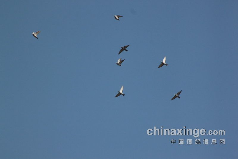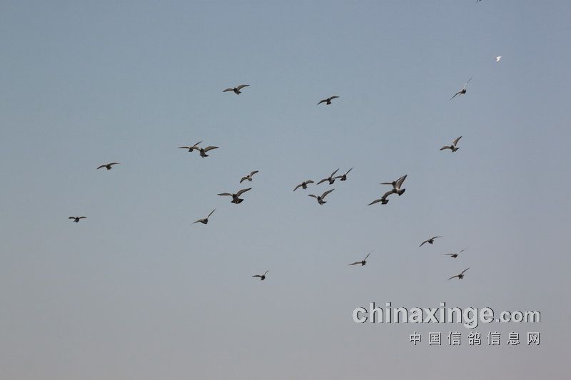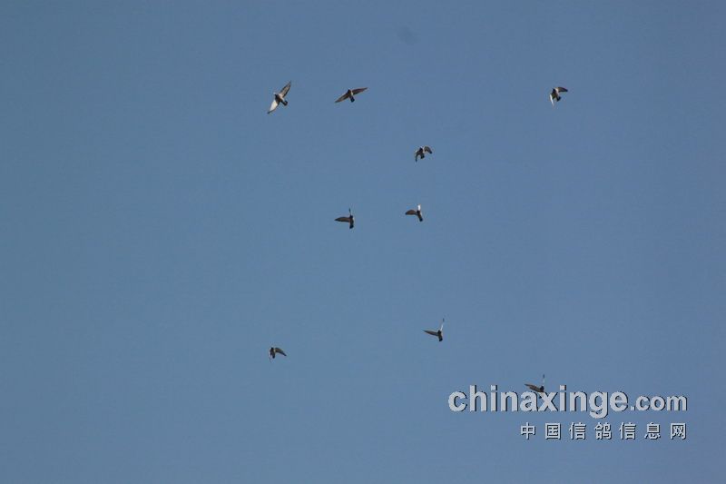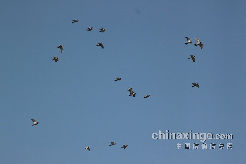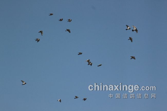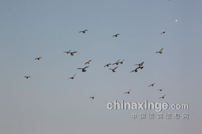 赛鸽一批又一批地飞归,一二十羽,三五羽,三五十羽,整体飞归动态良好。