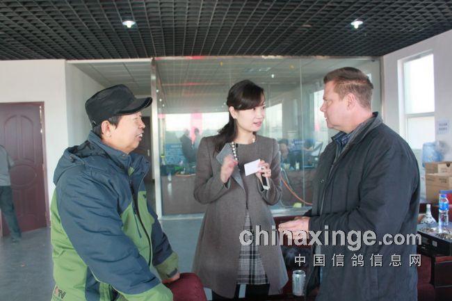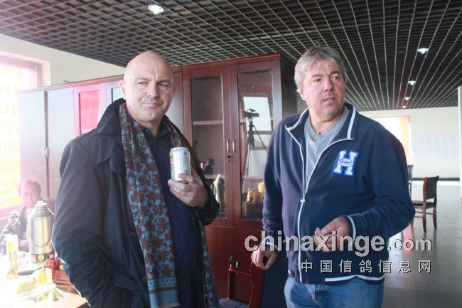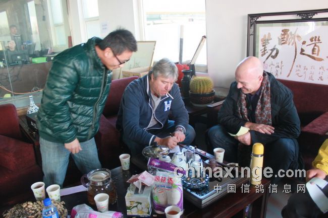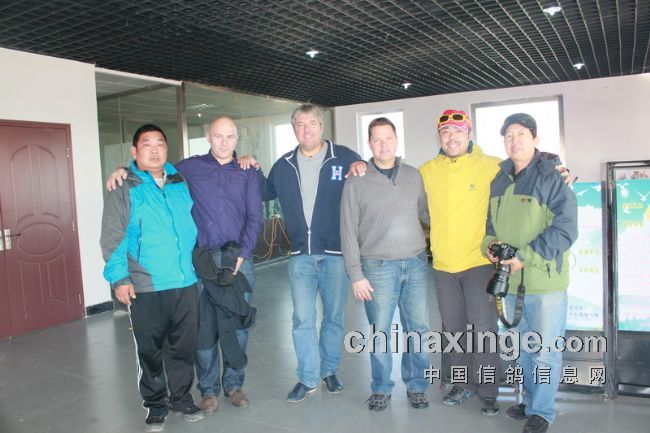 有三位外宾在昨天廊坊国际鸽展后于中午前来观摩。他们是美国的山普森、比利时的马克和库克。公棚董事长刘乃刚先生从放飞地回来后,与他们合影留念。