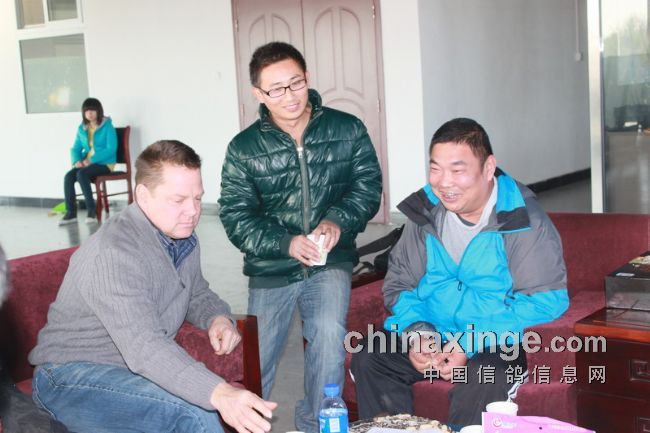 公棚董事长刘先生刚刚从放飞地回来与外宾、CCTV记者合影