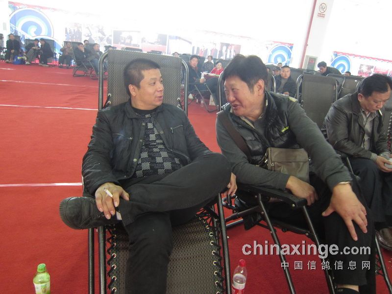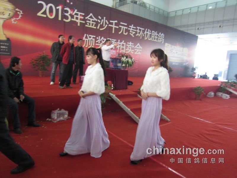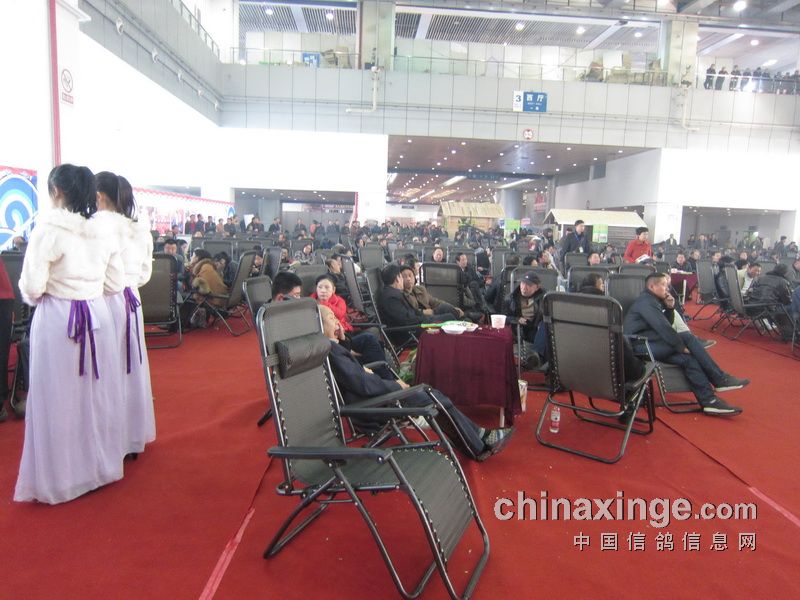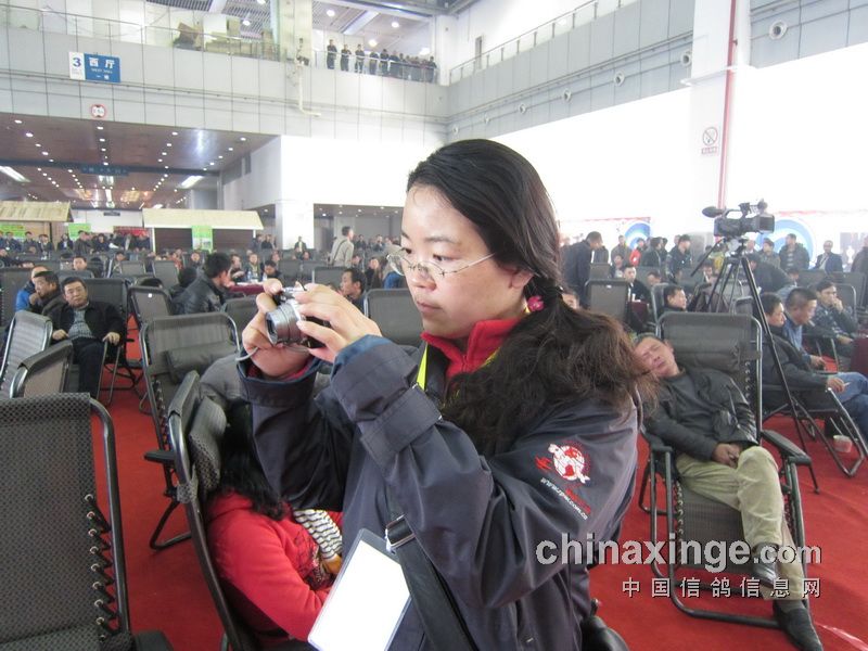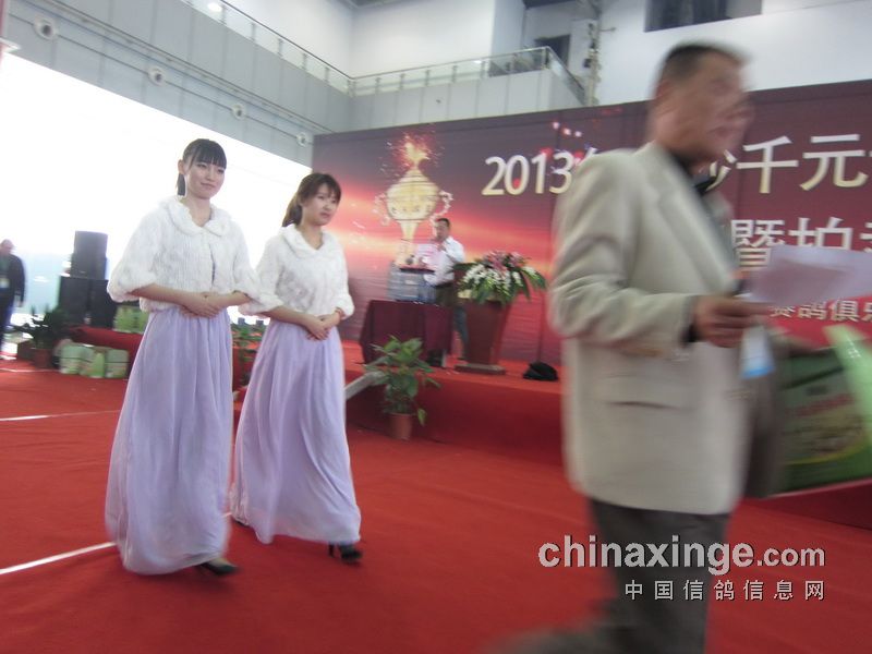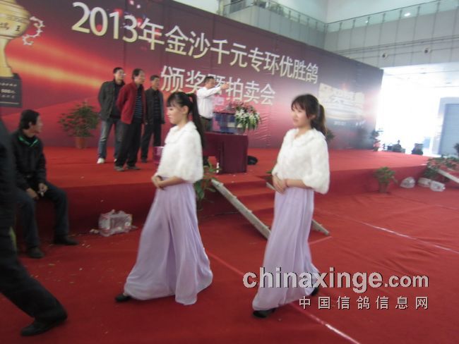 本届拍卖会有两个特点:一是拍卖竞争者五六人围坐在一个圆桌边,边抽烟,边喝茶,既观摩又竞拍;还有一个特点:当工作人员把拍卖鸽交到竞拍者手中的工作间,有二位礼仪女生尾随其后直到竞拍者面前,既显得和谐与尊重竞拍者,又是一道亮丽的风景线。