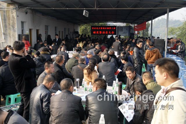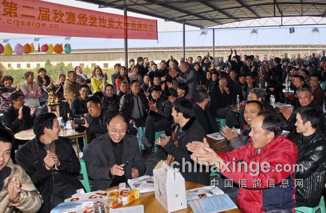 2013年龙乡赛鸽公棚第二届公棚赛获奖鸽拍卖大会就在公棚拍卖厅举行。来自国内上海、贵州、陕西、山西、四川等部分地区的参赛选手近六百余人参加了此次拍卖会。