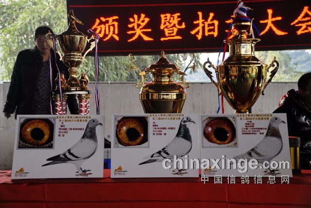 2013年11月30日至12月1日,重庆市龙乡赛鸽公棚举行第二届获奖鸽拍卖会,两天共拍出获奖鸽五百六十三羽,无一流拍。其中有决赛获奖鸽四百名,加强赛获奖鸽一百六十三名。