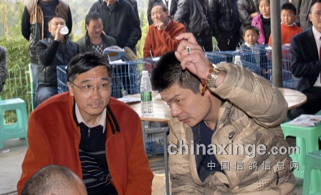 刘文斗先生与重庆大联盟赛鸽公棚董事长在拍卖现场