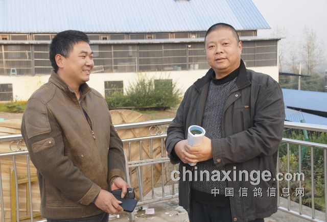 铜梁鸽友李芳(右)刘大平(左)鸽舍夫妻欣赏拍回的爱鸽