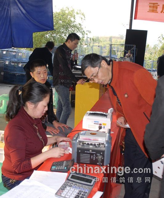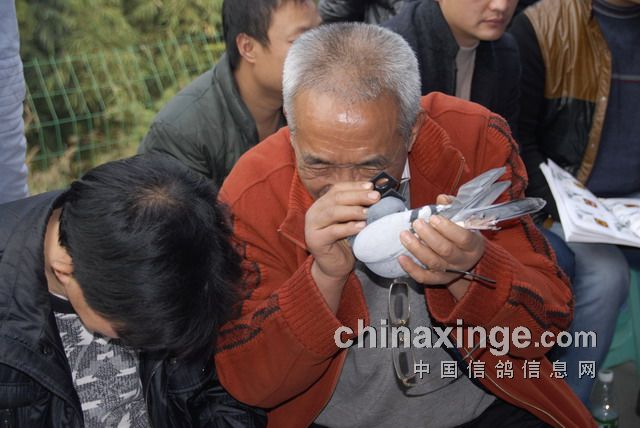 拍卖场上我注意到一位很有资历的老鸽友拍卖热情很高,不断地认真查看拍卖手册,并多次举牌,看来是选中了几羽自己心仪的鸽子,最后终于拍到了一羽爱鸽,心中好不欢欣!可惜没有记录老先生的姓名。