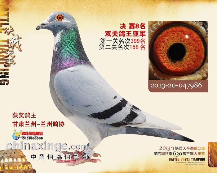 8 兰州鸽协 2013-20-047986 灰花 1152.0267 2013-11-27 15:14:01.62 甘肃兰州
