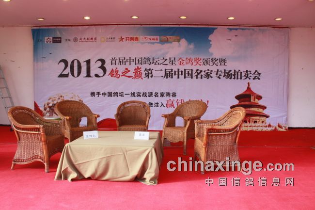 今天,在北京神农山庄举行了一场由职业赛鸽网举办的名称为“2013年鸽之巔第二届中国名家专场拍卖会”。