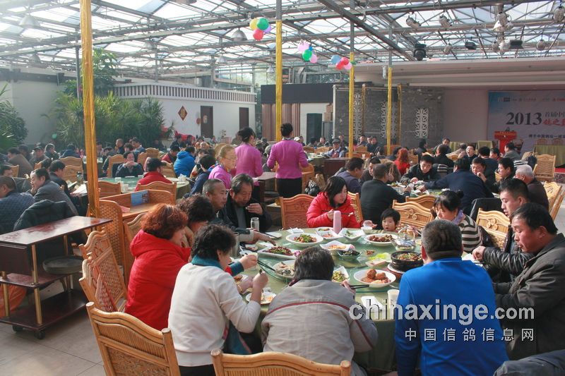 笔者询问山庄大厅服务经理得知午餐共摆了26桌。看来,蹭饭的比拍卖和观摩者还多。真心前来参加拍卖的鸽友有百人左右。许许多多的拍卖会不知道养着多少到山庄蹭饭的不吃白不吃之徒。