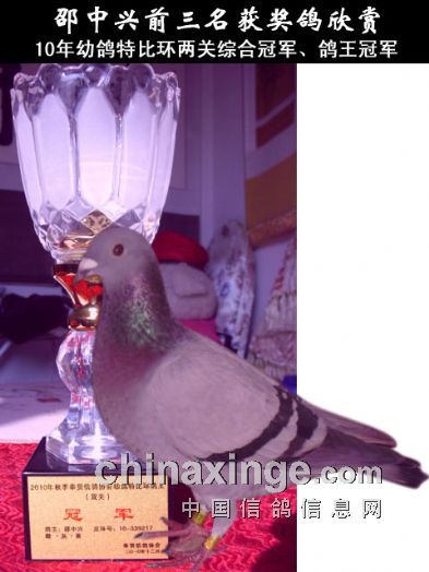 就是这羽超级赛鸽、鸽王冠军,被这个好话说尽,差一点没有叫你爷爷的“暴发户、有两个小工厂厂长的人”借去。随后发生的事情让人痛恨,当时说好借用三个月,可到了三个月去拿鸽子躲起来不见面。一会说在苏州,再去找他说在南京。刚借去时,上海有三个鸽友要买这个鸽王冠军,我说借给某某了。本人脸皮薄,张不开嘴说有人要买鸽王冠军,要他提前还给我的话。其他几个经常在一起玩鸽子的朋友当面说他:某某啊,人家老邵是工薪阶层,很需要这笔钱,你把鸽王冠军还给老邵吧。可是人家这位暴发户厂长就不接你的话。