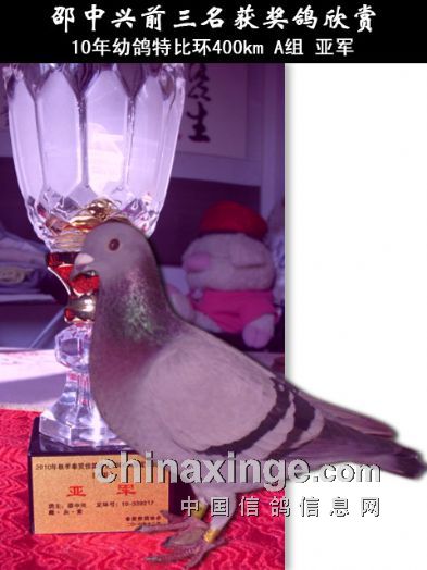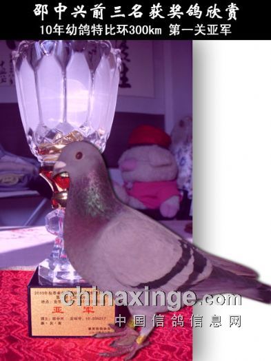 在前几年秋季区3000枚幼鸽双关特比环比赛中,笔者本人的一羽赛鸽获得第一关南路300公里亚军,第二关南路400多公里精英赛180元环季军、幼鸽特比环四名,双关综合冠军,鸽王冠军,还获得两项指定鸽亚军。