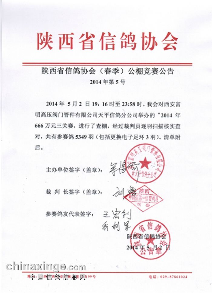 陕西省信鸽协会监赛文件