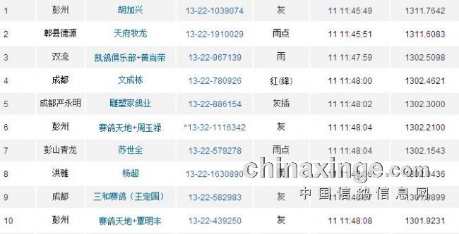 鑫鑫公棚2014年第四届决赛上笼鸽清单(已排序)