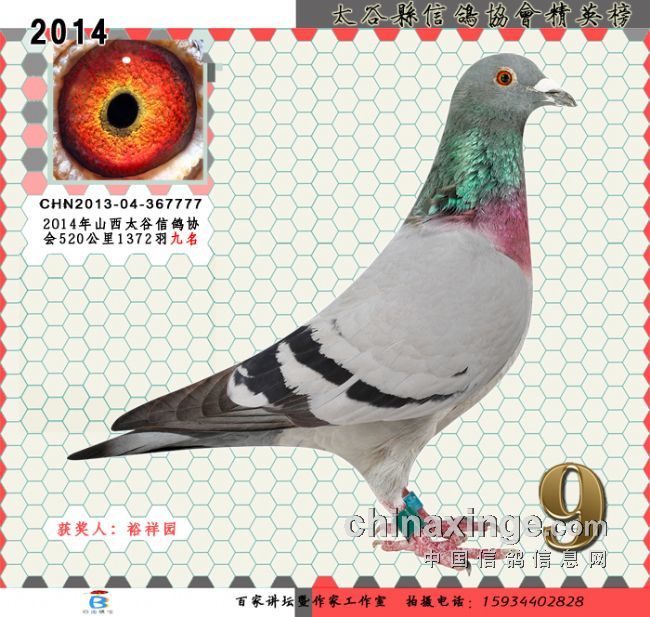 山西省晋中市太谷县信鸽协会2014年春季520公里康保赛,于4月30日早上7点整开笼,当地天气晴。比赛共集鸽1372羽,当天归巢率仅为10%,前十名成绩如下: