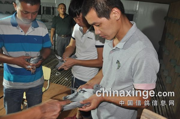 2014年7月31日19点40分,“铁鸽三项”公棚由南京市信鸽协会秘书长陈益国、裁判长南来京(国家级)率领一行七人的裁判组及来自江苏泰兴、苏州、安徽芜湖、南京本地的参赛鸽友代表九人,对存棚赛鸽进行了逐羽环号核对并经电脑扫描确认无误的清棚工作。清棚开始前,鸽友代表对选手进行例行抽检,查看选手健康及换羽状况。