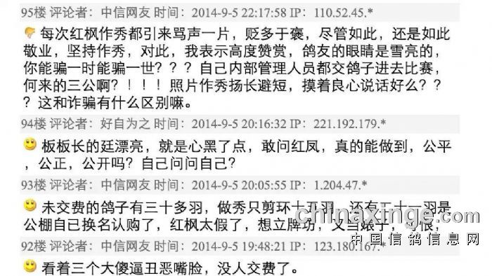 她偶尔写点小文章,偶尔被中信网选用了,也只是增加鸽友阅读的趣味性和多样性;她没有退鸽子、没有黑奖金;她言而有信、按章办事;她服从裁判、尊重鸽友。