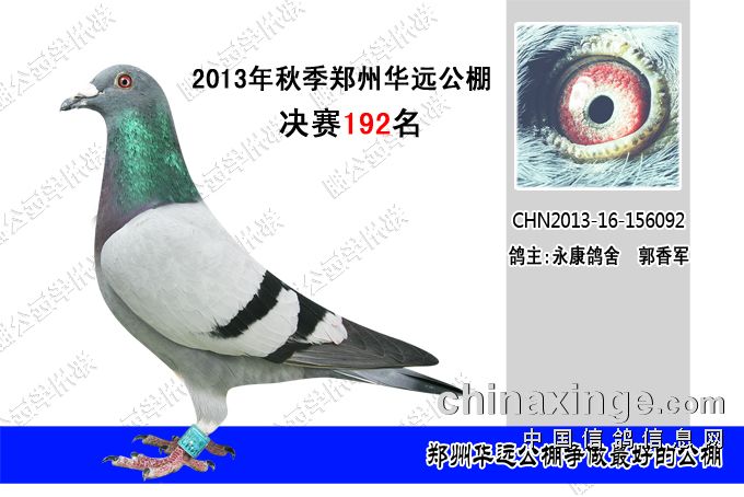 | 郭香军:我是开封永康鸽舍,我2011年7月开始养鸽子,中间有20年左右没有养了,我小时候就喜欢养鸽子。12春季在我们市会300公里比赛进奖24名,秋季500公里普赛进奖7羽,300公里比赛进奖2羽,20元特比环进奖5羽。开封县信鸽协会530公里比赛20名。13年春季500公里普赛进奖3羽20元特比环进奖2羽100元特比环进奖2羽,300公里进奖3羽。秋季比赛520公里比赛全市当天归巢76羽,我的鸽子归巢9羽进奖7羽。郑州铁路开封分会300公里进奖1羽28名,商丘与开封友谊赛200元特比环进奖1羽,郑州华远公棚决赛进奖1羽192名,山东冠林公棚决赛进奖3羽53名257名310名,其他公棚还在比赛。虽然地方赛没有太高的成绩,最高18名,我已经很高兴了,我喜欢它们,因为它们能给我带来快乐!我鸽子的所有成绩都可以在网上查到的。百度输入开封永康鸽舍就可以了;,42121121,15137850573 |