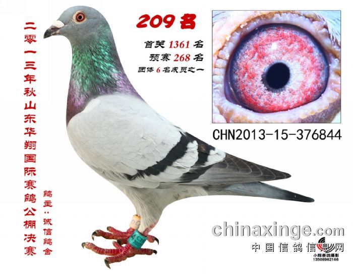 山东华翔国际公棚,280公里预赛上笼2918羽,获268名,481公里决赛上笼2120羽,获209名,【同窝双雌,另一只获481公里决赛378名,523公里加强赛26名】,血统;阜阳柏士彬林波尔,柏师傅指定配对。
