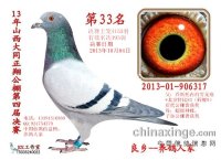 | 养鸽人家:本鸽为白雪无痕(本舍引进-乔斯托内原舍)配北京市特比环83名(桑杰士,同孵9名)直子做出,33名上辈,及平辈参加所有公棚比赛均获奖。新疆德天,山东,江苏国铭,