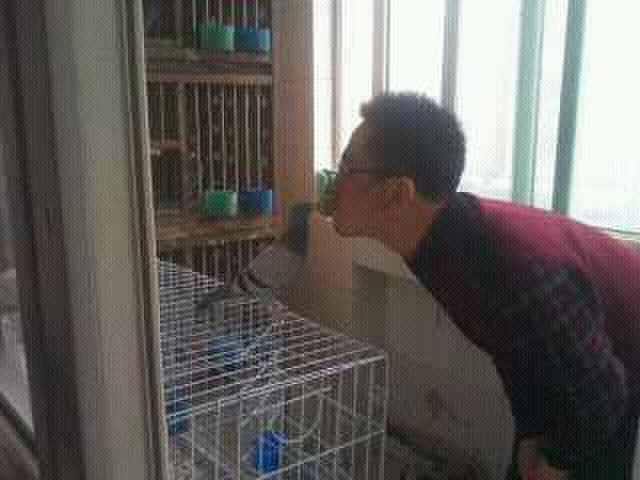 他从小就很温顺喜人,常常飞在我的肩上,也经常从我嘴里叼食吃。今天就把他与大家一同分享他小的时候,与我亲吻的瞬间!!! |